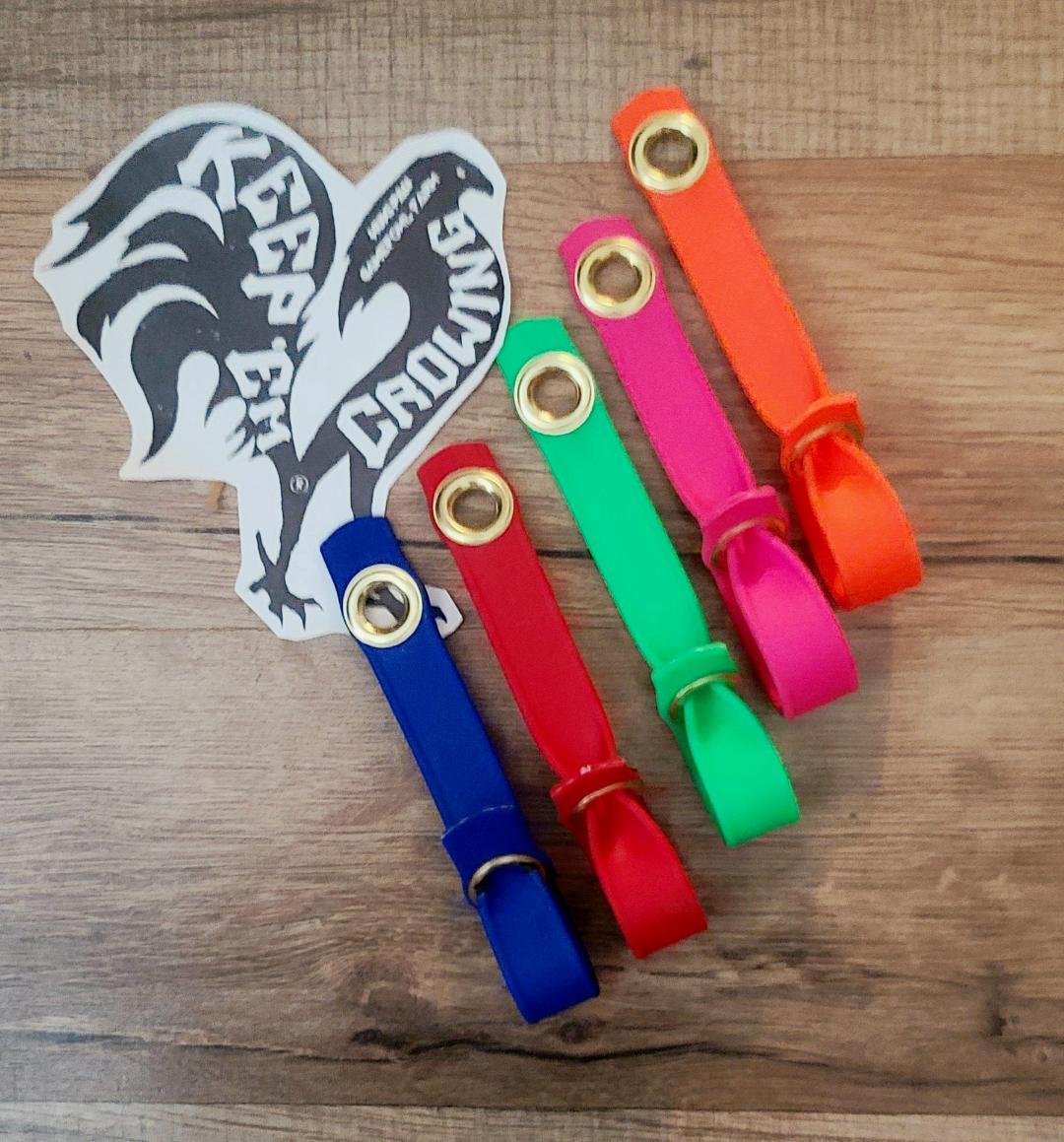 Universal size hitches. Great for young and old birds. COLORS: red | blue | pink | green | orange. sold by the dozen. Includes nylon washers.